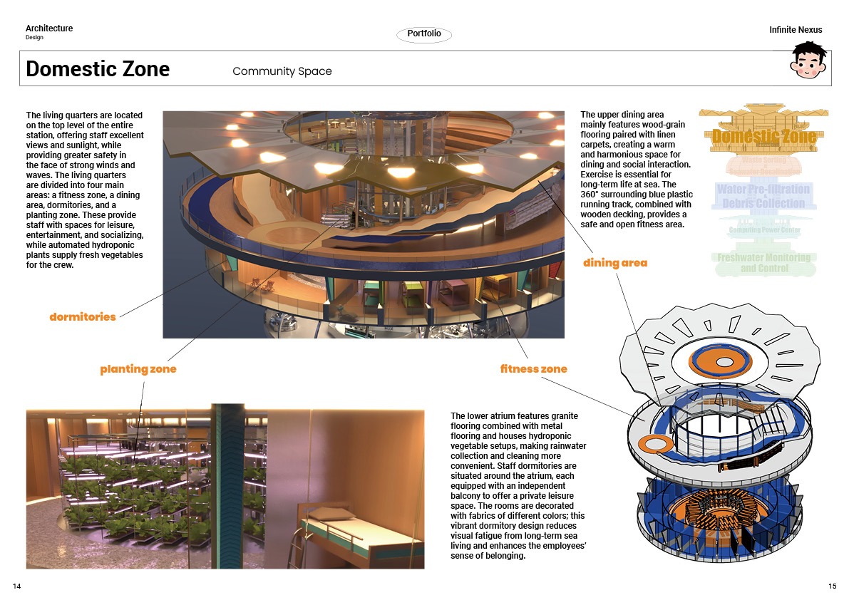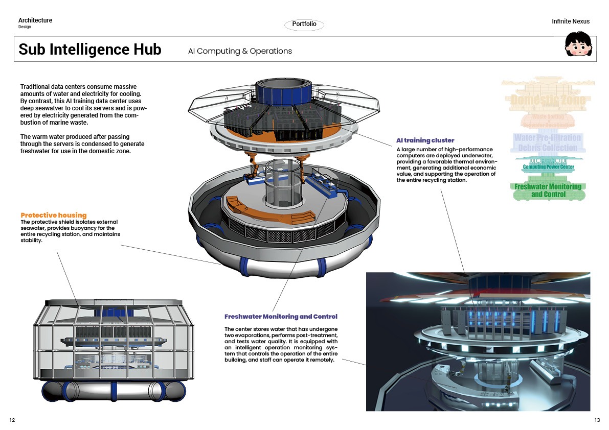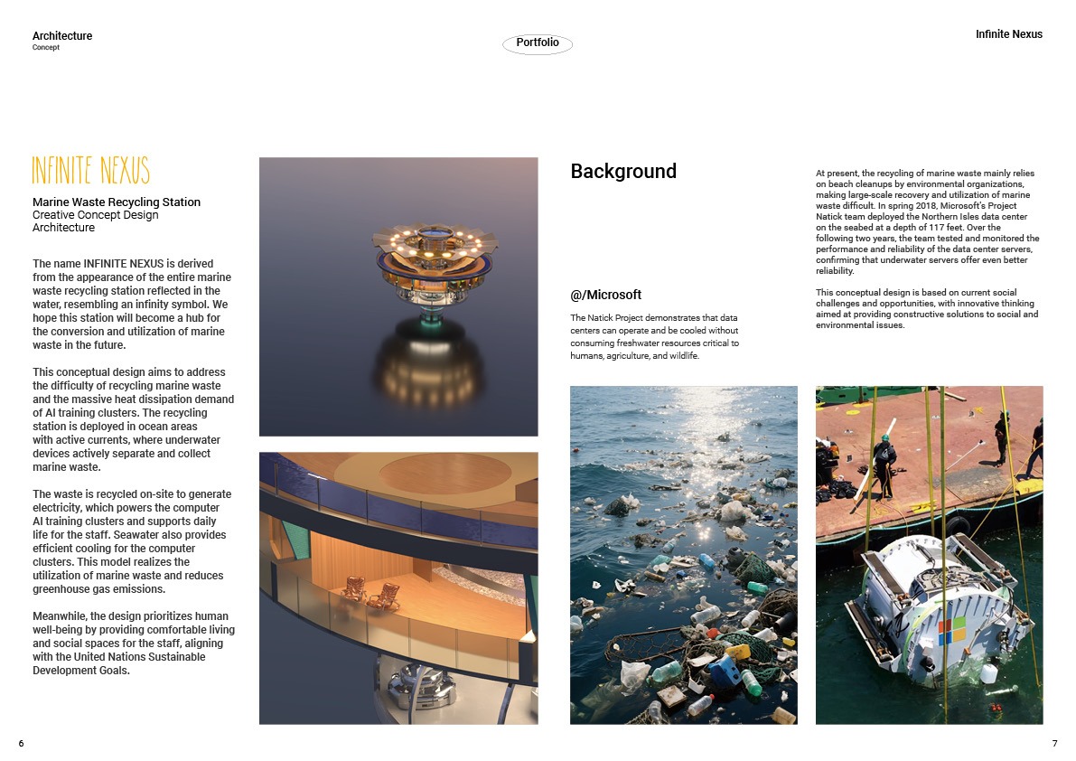 Their creative work titled “Infinite Nexus”, which is initially a group project in MDIT310 Asset Creation for VR/AR, is a conceptual design aiming to address the difficulty of recycling marine waste and the massive heat dissipation demand of AI training clusters. “Infinite Nexus”, which builds a sustainable model integrating environmental, energy and social values, is derived from the appearance of the entire marine waste recycling station reflected in the water, resembling an infinity symbol. The team hopes that this station will become a hub for the conversion and utilisation of marine waste in the future. For more information on this creative work, please check out: https://museaward.com/winner-info.php?id=236954